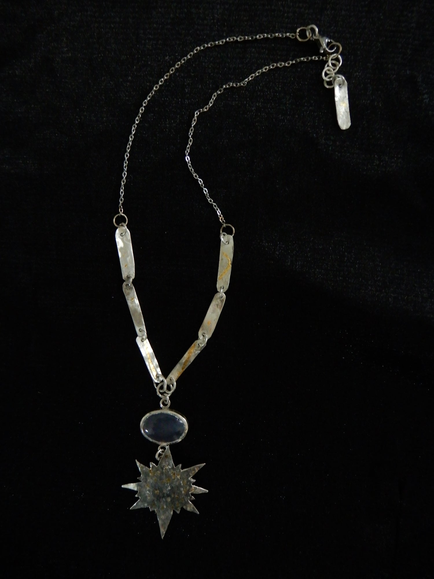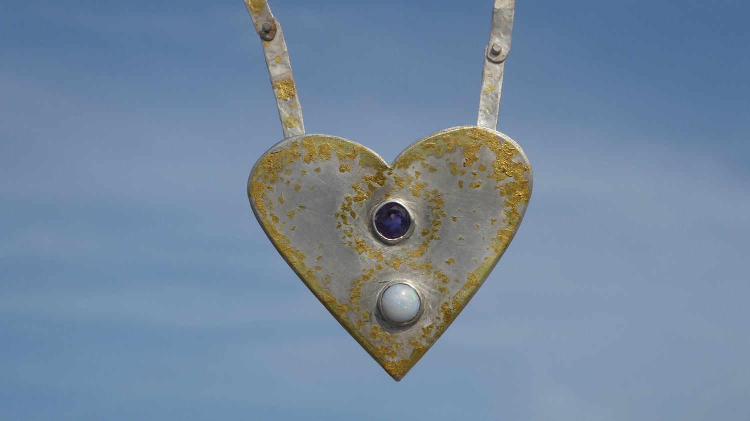 Fine silver with silver dust, gold dust, 24k gold foil, amethyst and moonstone